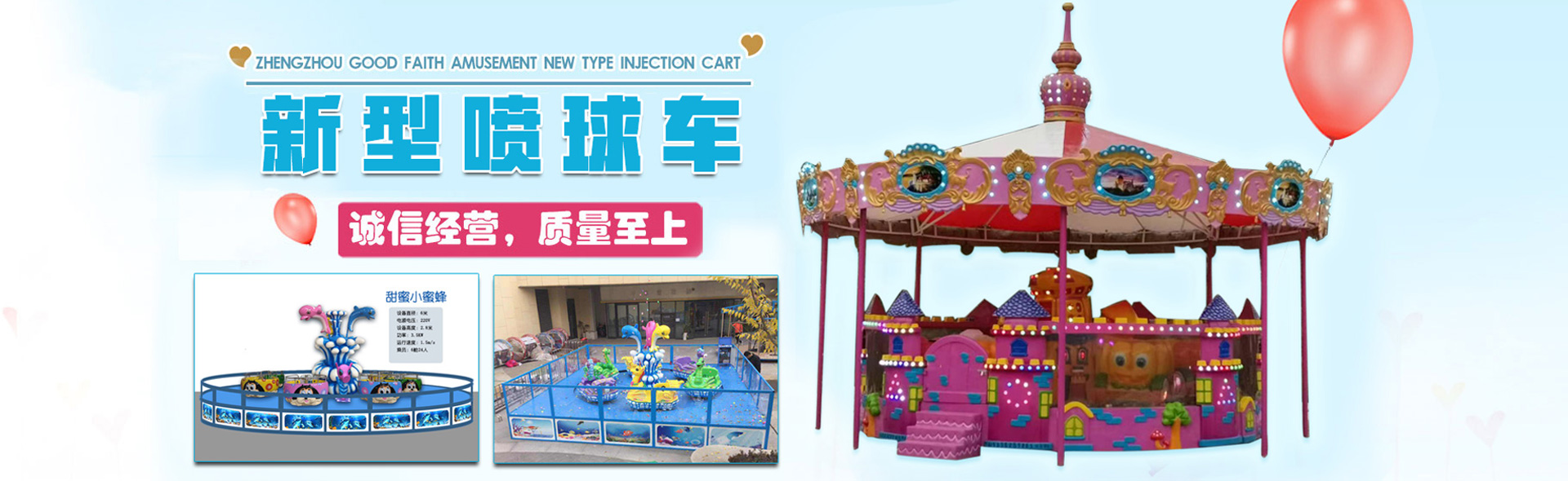 鄭州市上街區誠信游樂設備廠本著"誠信經營,質量為主"的經營理念,專業生產各種中小型兒童游樂設備。我們的主要產品有轉馬系列,軌道火車系列、迷你海盜船系列,迷你飛椅、旋轉飛機系列,淘氣堡、充氣床系列等 ,我廠的產品機械結構設計合理,產品外觀新穎獨特,安全而又刺激,充分體現了現代化游樂行業的新型審美觀,迎合了現代消費者的戶外消費理念,具有極為廣闊的市場前景。我們的產品以新穎的外觀和耐曬光亮的烤漆工藝,和過硬的機械設計在業內擁有良好的品牌知名度和市場美譽。我們生產經營的宗旨是:在質量上讓客戶放心,在價格上讓客戶滿意,售前做好質量,售后做好服務.